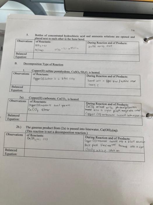 Solved Experiment 7 Common Chemical Reactions 7 5 Name Chegg Com